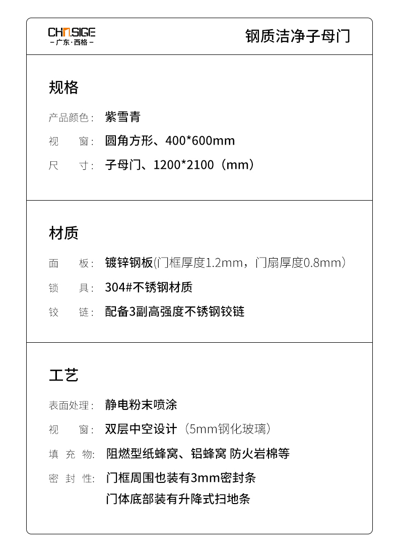 產品簡介:廣東西格大型凈化門生產廠家