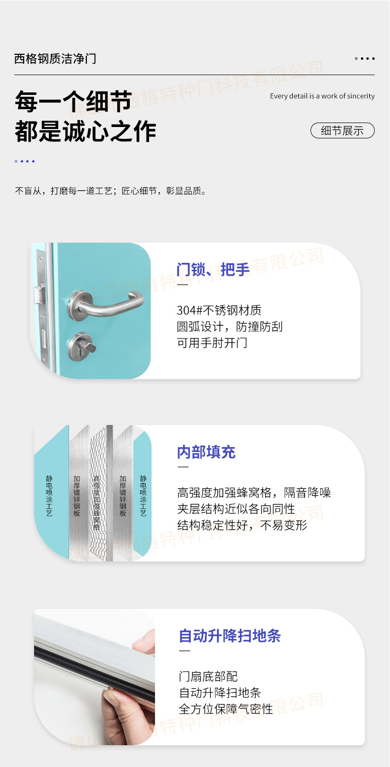 產品簡介:廣東西格,大型凈化門生產廠家,專用生產各類型凈化門,款式,視窗,材質厚度,均可定制。