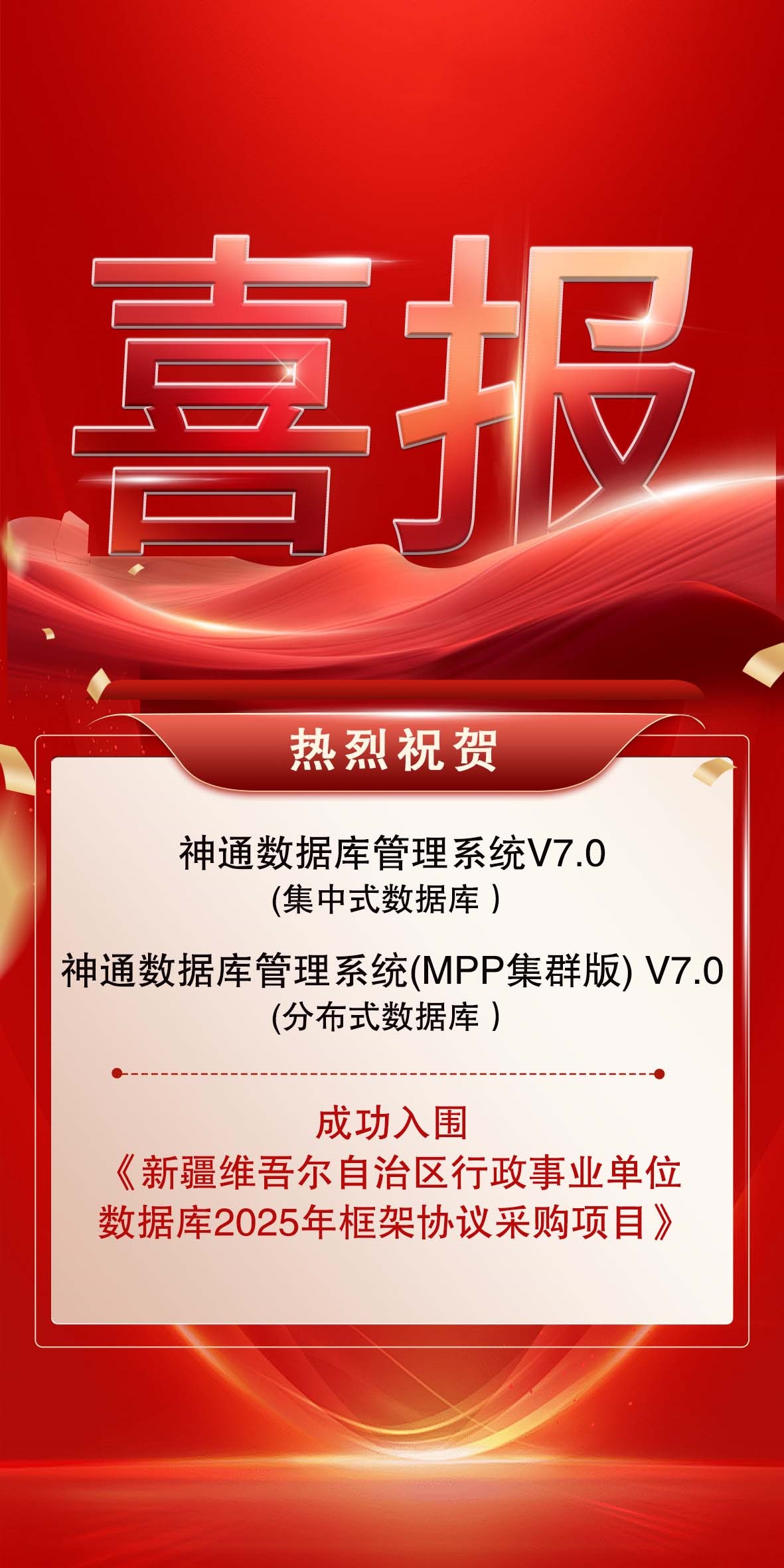 喜訊 神通數(shù)據(jù)庫集中式和分布式產(chǎn)品入圍新疆維吾爾自治區(qū)行政事業(yè)單位數(shù)據(jù)庫2025年框架協(xié)議采購項目