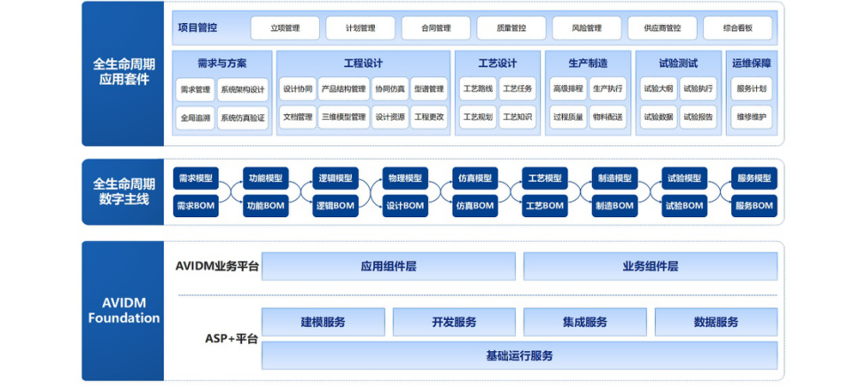 基于神軟ASP+平臺(tái)五大服務(wù)能力開(kāi)發(fā)AVIDM業(yè)務(wù)平臺(tái),實(shí)現(xiàn)了應(yīng)用組件層和業(yè)務(wù)組件層,提供了多種通用及可復(fù)用的功能模塊,面向多個(gè)業(yè)務(wù)應(yīng)用進(jìn)行使用,完成面向工業(yè)軟件的全生命周期支撐。以神軟ASP+平臺(tái)和AVIDM業(yè)務(wù)平臺(tái)為基礎(chǔ)構(gòu)建了AVIDM Foundation底座,統(tǒng)一支撐數(shù)字化協(xié)同研制系統(tǒng)AVPLM。ASP+面向AVPLM的關(guān)鍵技術(shù)研究,突破制約全生命周期數(shù)據(jù)管理發(fā)展的3類(lèi)13項(xiàng)關(guān)鍵技術(shù),其中超過(guò)一半的關(guān)鍵技術(shù)在神軟ASP+平臺(tái)支撐能力中實(shí)現(xiàn)技術(shù)突破,在數(shù)據(jù)全周期統(tǒng)一建模與模型實(shí)例化管理、多組織業(yè)務(wù)數(shù)據(jù)隔離與權(quán)限體系設(shè)計(jì)等五項(xiàng)核心關(guān)鍵技術(shù)領(lǐng)域,取得了突破,技術(shù)研究成果已經(jīng)應(yīng)用于神軟ASP+平臺(tái)級(jí)服務(wù)中。