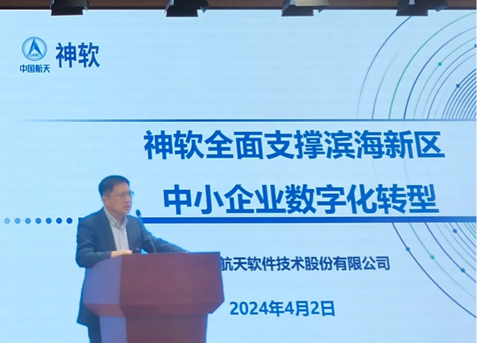 2024年4月2日,神軟公司受邀請出席在天津市濱海新區(qū)舉行的“濱海新區(qū)中小企業(yè)數(shù)字化轉(zhuǎn)型城市試點(diǎn)數(shù)字化服務(wù)商大會”。作為主要服務(wù)商代表,神軟公司業(yè)務(wù)副總經(jīng)理呂明理代表公司在會議上發(fā)言。