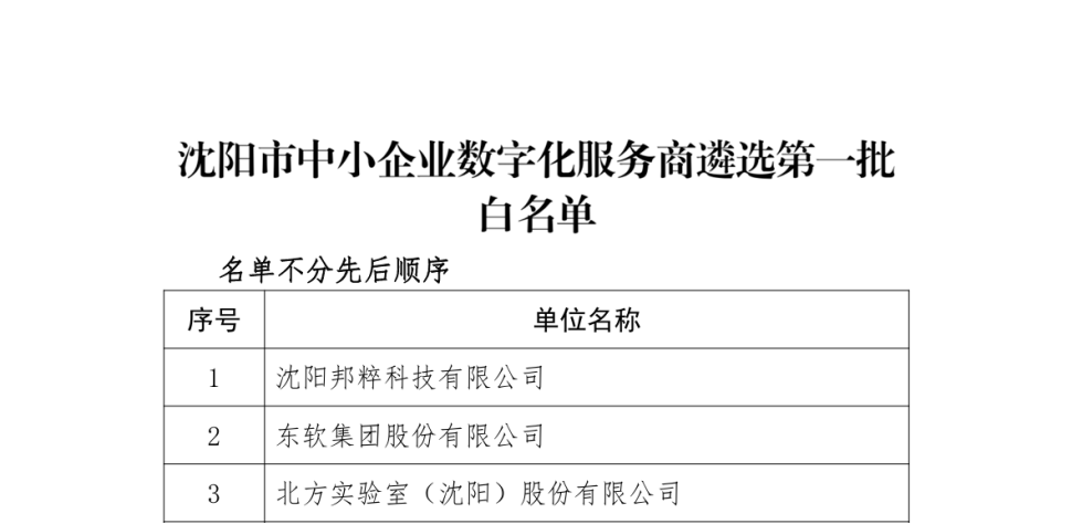 神軟公司成功入選“沈陽市中小企業(yè)數(shù)字化服務(wù)商遴選第一批白名單”公示名單