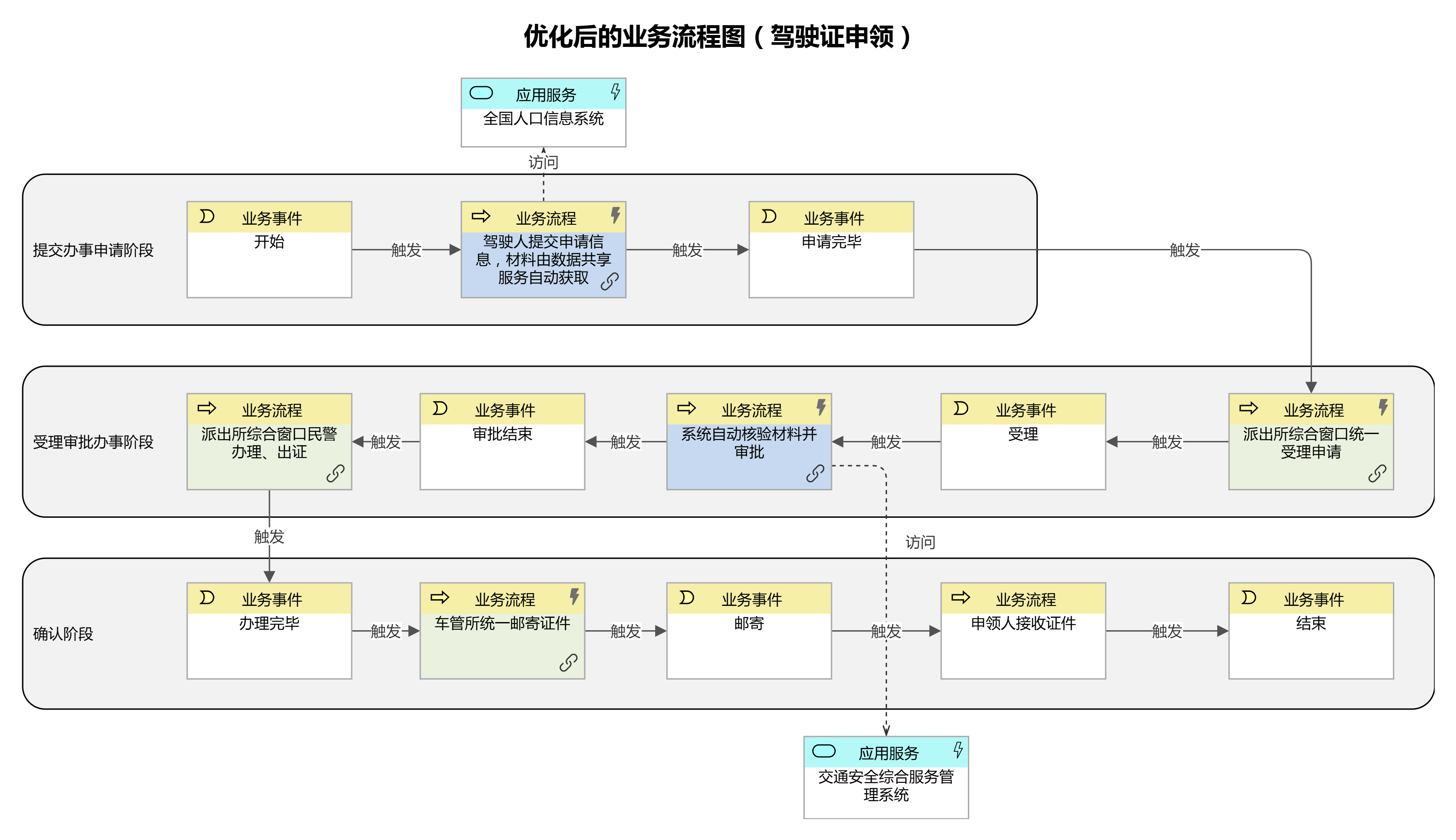 優(yōu)化業(yè)務流程:謀劃好可集成的數據、可協(xié)同的部門后即完成了多跨場景的集成過程。集成后形成的新流程活動替換現行活動,實現流程的再造。再造流程將解決重大需求中描述的“堵點”、“卡點”問題,因此新流程中的創(chuàng)新活動、智能活動就是需要改革的項目。