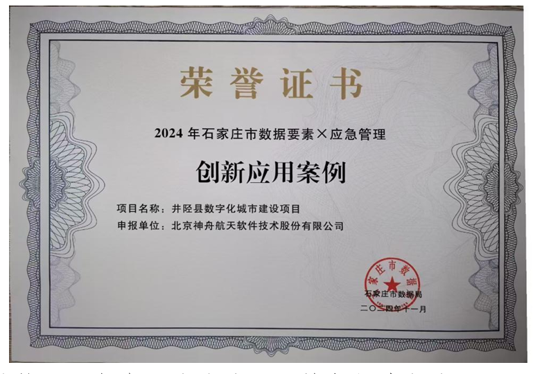 近日,神軟公司承建的井陘縣數(shù)字化城市建設項目,榮獲2024年石家莊市數(shù)據(jù)要素X應急管理創(chuàng)新應用案例獎項。此獎項是依據(jù)《“數(shù)據(jù)要素X”三年行動計劃(2024-2026年)》的要求,由國家數(shù)據(jù)局、中央網(wǎng)信辦、工業(yè)和信息化部等有關(guān)部門聯(lián)合通過2024年“數(shù)據(jù)要素X”大賽選拔。