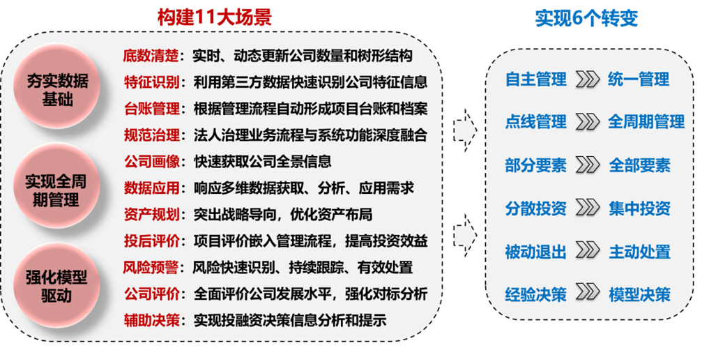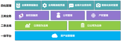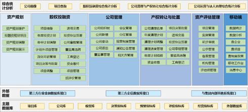 神軟資產(chǎn)運營管理系統(tǒng)以投融資項目、公司兩條主線為抓手,圍繞投融資管理、公司管理、產(chǎn)權(quán)管理三類業(yè)務(wù)進行構(gòu)建。