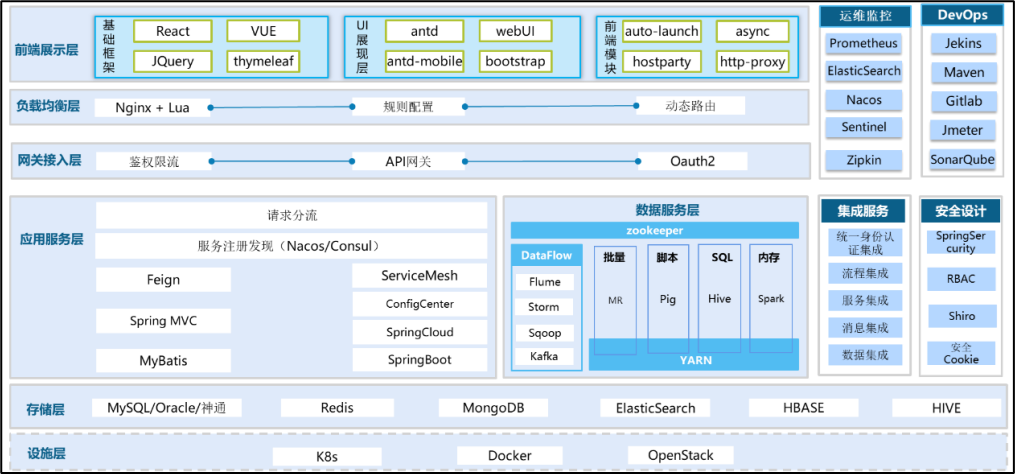 技術(shù)架構(gòu):基于ASP+微服務(wù)架構(gòu),融合低代碼快速開發(fā)、容器云平臺等技術(shù)手段,實現(xiàn)快速開發(fā)、迭代、部署等開發(fā)運維一體化。
