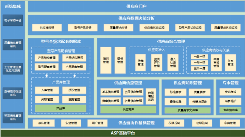 全級(jí)次供應(yīng)商管理系統(tǒng)按照對(duì)供應(yīng)商“全領(lǐng)域、全級(jí)次、全過(guò)程和全要素”管理的要求,以實(shí)現(xiàn)“全領(lǐng)域、全級(jí)次、全過(guò)程、全要素”覆蓋的供應(yīng)商管理工作為目標(biāo),對(duì)供應(yīng)商管理活動(dòng)中產(chǎn)生的各類(lèi)信息進(jìn)行統(tǒng)一歸集與管理。系統(tǒng)通過(guò)供應(yīng)商信息管理、綜合管理、型號(hào)/產(chǎn)品數(shù)字結(jié)構(gòu)管理、決策分析等功能模塊,實(shí)現(xiàn)對(duì)供應(yīng)商全生命周期過(guò)程管理和各類(lèi)信息的管理管控。通過(guò)系統(tǒng)的實(shí)施,可實(shí)現(xiàn)供應(yīng)商管理業(yè)務(wù)的 “信息服務(wù)、業(yè)務(wù)支撐、決策支持、風(fēng)險(xiǎn)管控”,不斷提升企業(yè)供應(yīng)鏈現(xiàn)代化水平。